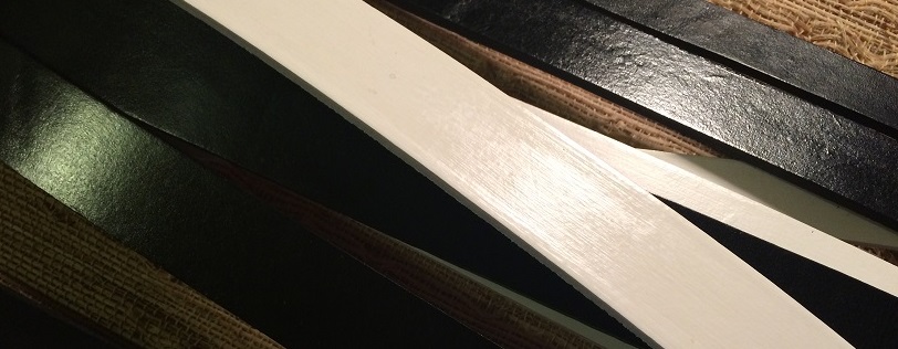 We start with strips cut from quality raw cowhide. The strips have a beautiful flesh side and a buffed grain side showing plenty of genuine character with stretch marks and range marks.