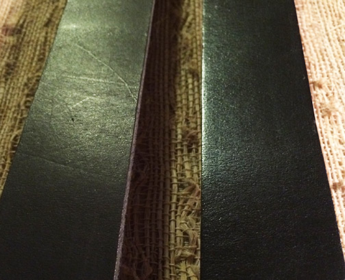 We start with strips cut from quality raw cowhide. The strips have a beautiful flesh side and a buffed grain side showing plenty of genuine character with stretch marks and range marks.